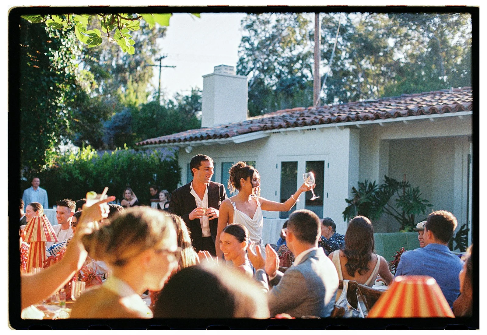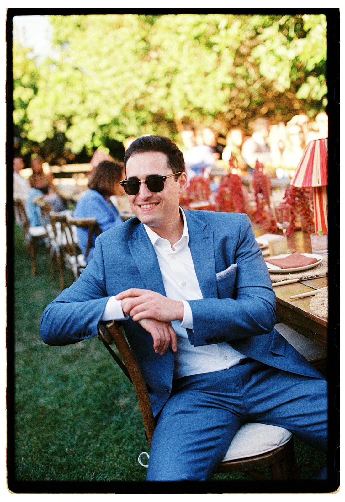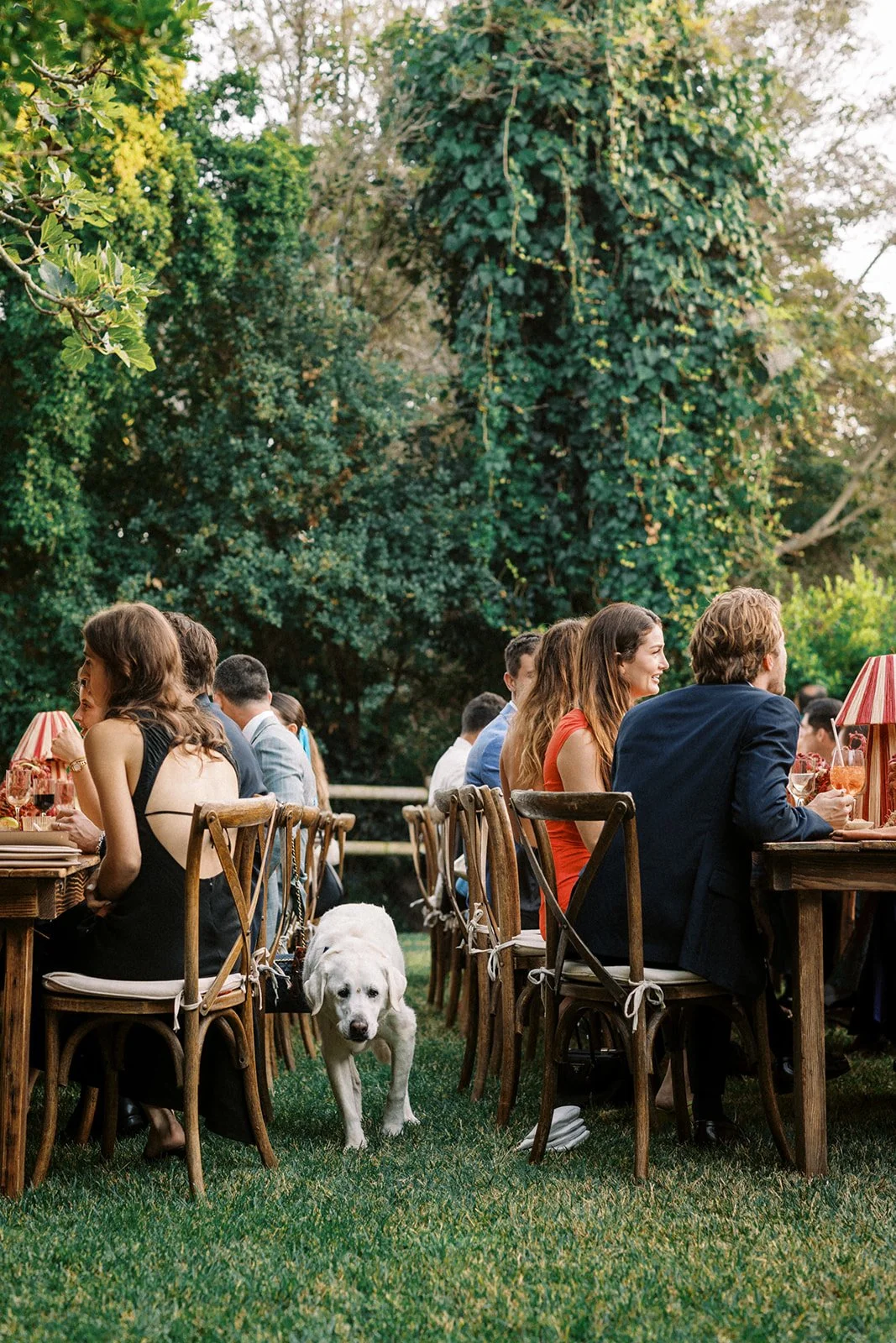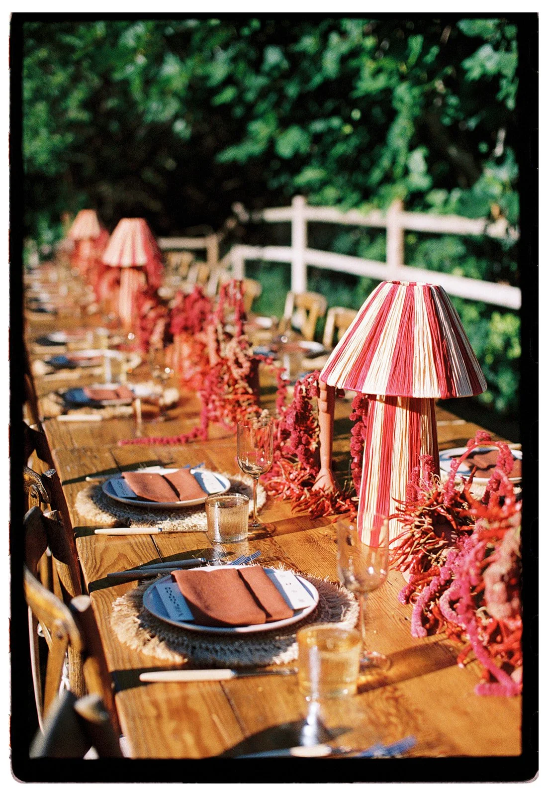 it was an additional joy to design the rehearsal dinner for Alex and Noah in a contrasting color palette and scheme. based on an inspiration of an all red tablescape, we concepted and designed an immersive floral runner of red hanging amaranth entwined with chili garlands (custom made in studio), flowing in and out of terra cotta bud vases down the length of the tables. a fiery and celebratory start to a weekend of festivities!
