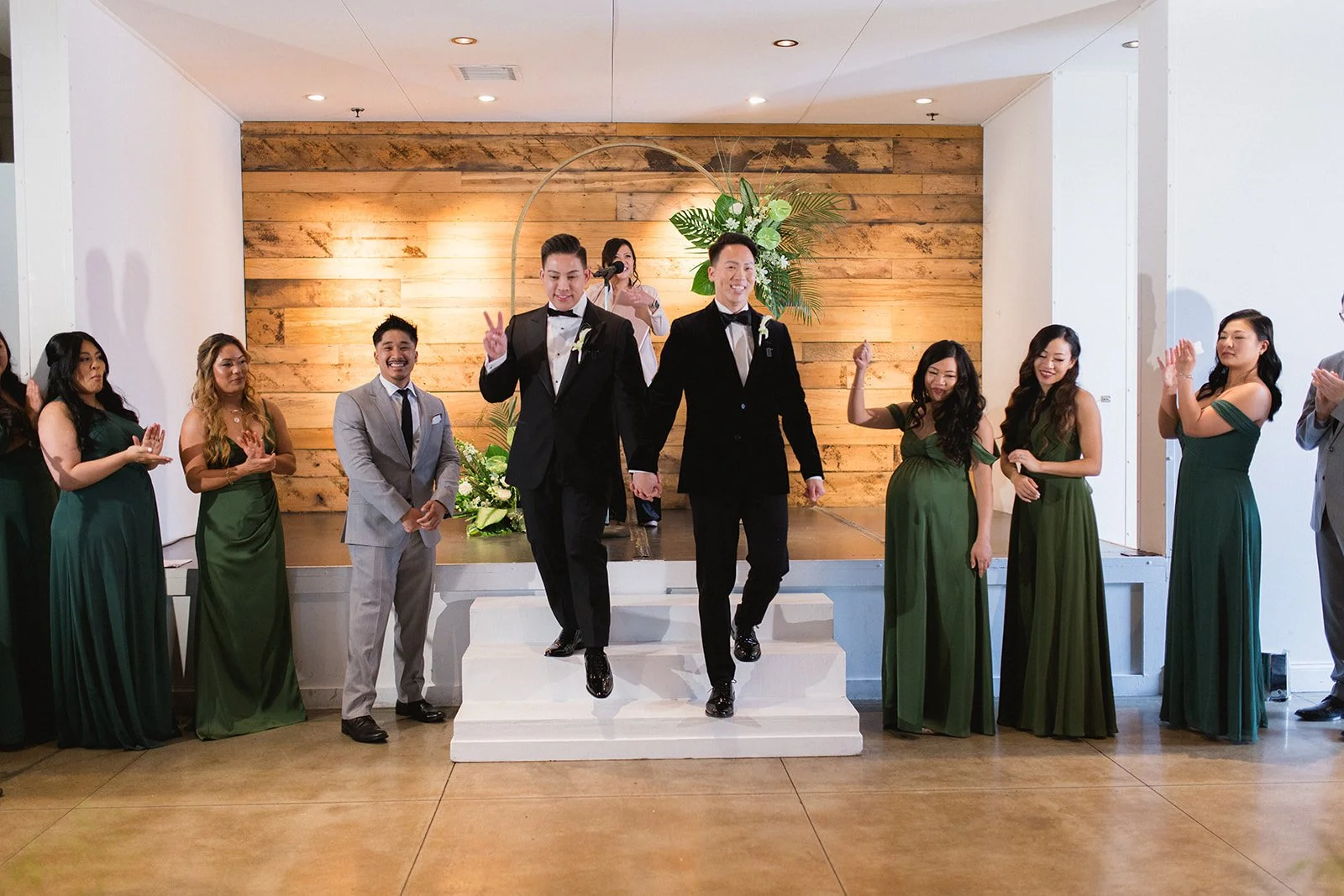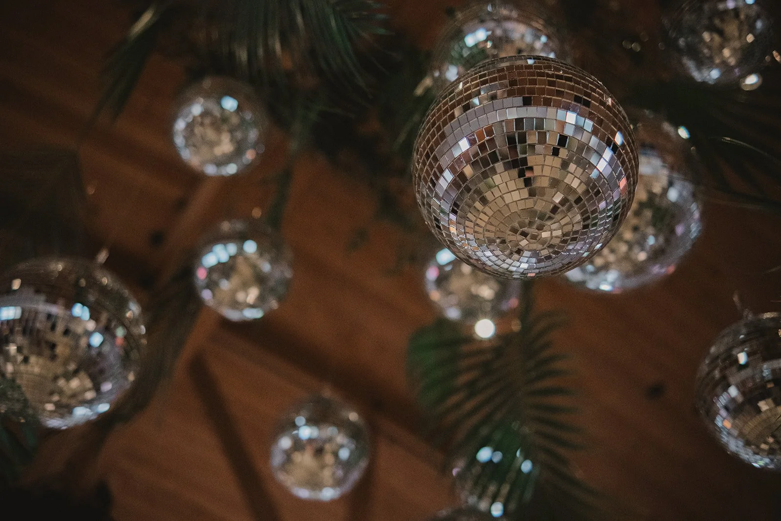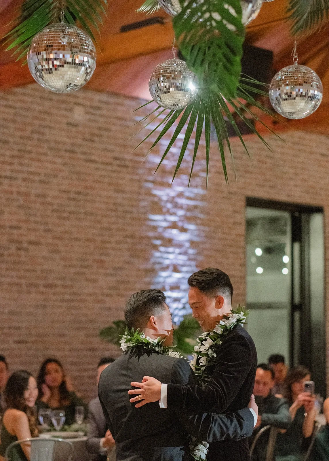 above it all, a custom disco ball installation shimmered through hanging tropical foliage. Peter and Nolan shone brightest, however, each performing for the other with violin and dance. the night was a brilliant and celebratory beginning for the newlyweds and for the new year.