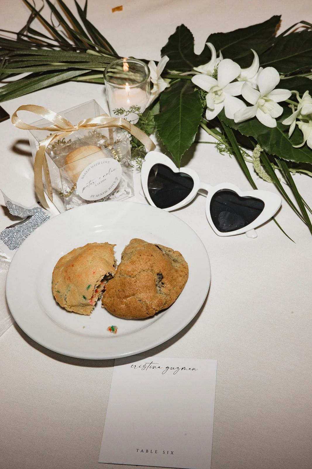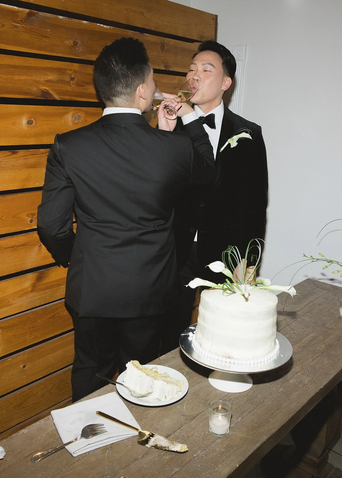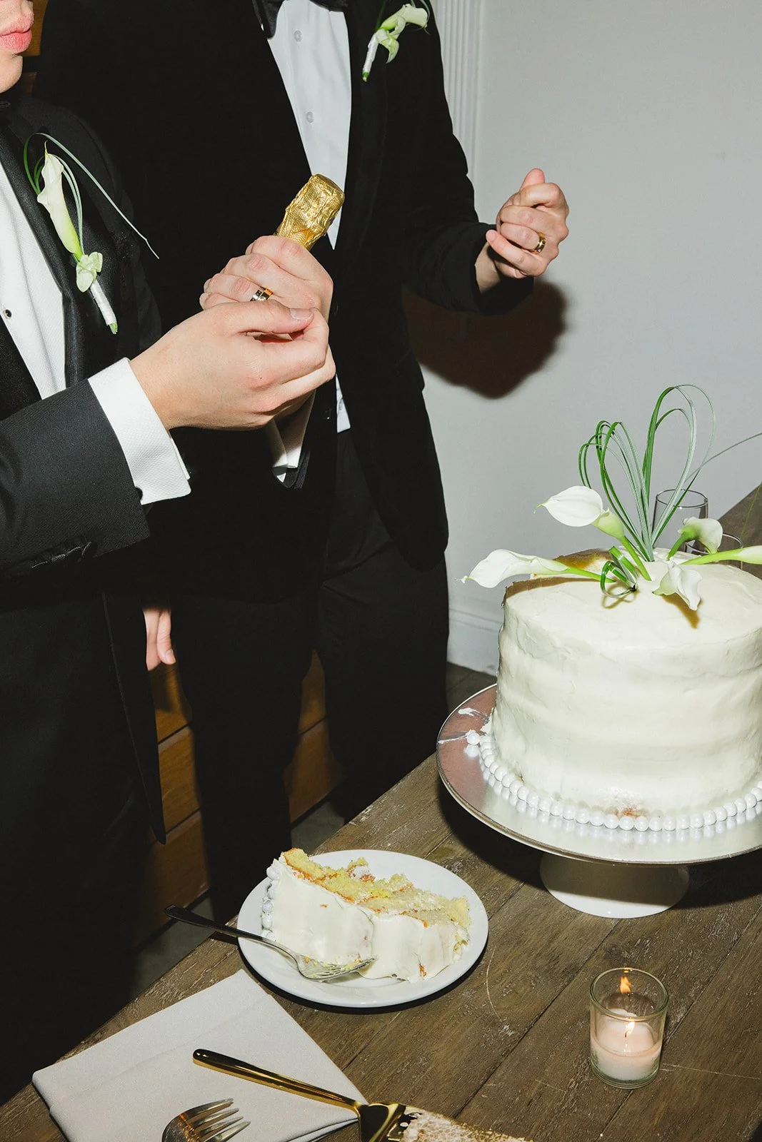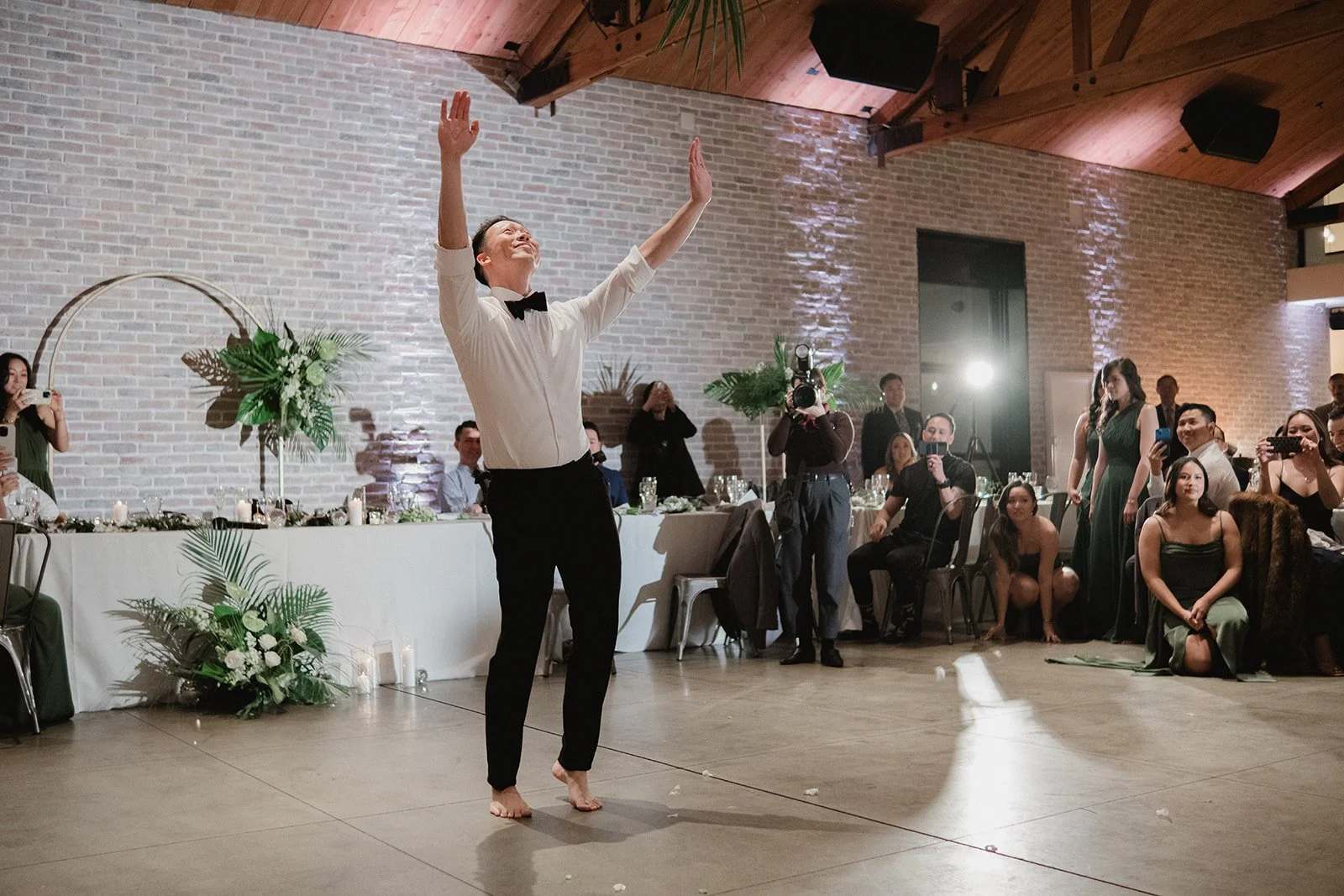 above it all, a custom disco ball installation shimmered through hanging tropical foliage. Peter and Nolan shone brightest, however, each performing for the other with violin and dance. the night was a brilliant and celebratory beginning for the newlyweds and for the new year.