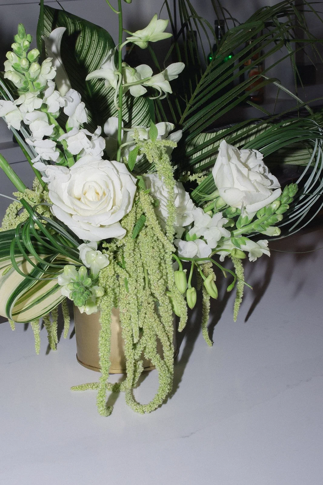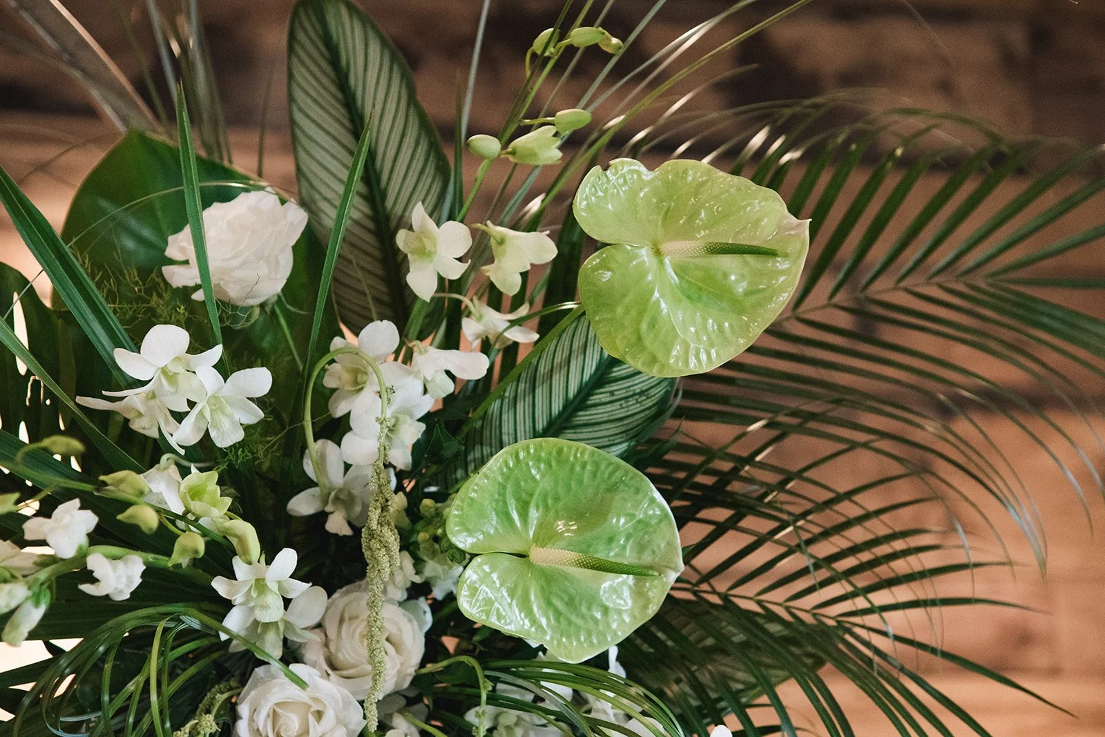 LUSH, TROPICAL, AND MODERN NEW YEAR’S FLORALS FOR A JANUARY WEDDING AT THE COLONY HOUSE.